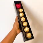 Surpreenda quem você ama com essa linda caixa cartonada, contendo uma delicada rosa vermelha e seis deliciosos ferrero rocher. o presente perfeito para demonstrar seu carinho de forma única e saborosa.