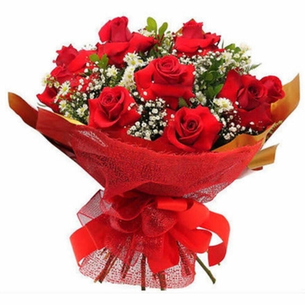 Rosas vermelhas combinadas com flores brancas delicadas, criando um arranjo elegante e apaixonante — ideal para surpreender com amor e sofisticação.