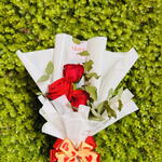 Descubra a magia dos sentimentos encapsulados neste elegante buquê. Esta é uma combinação delicada de 3 rosas intensamente perfumadas e uma sutil unidade de eucalipto para criar uma experiência sensorial inesquecível. Embrulhado em uma embalagem moderna e selado com um laço elegante, este buquê é uma expressão de amor, gratidão ou amizade. Para um toque extra especial, um bilhete personalizado com foto é anexado para eternizar os momentos mais queridos.