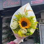Este requintado buquê é composto por três rosas brancas magníficas e um girassol radiante, acentuados por folhagens e complementos delicados. Cuidadosamente embalado e finalizado com um laço encantador, este arranjo floral se destaca tanto pela sua elegância sublime quanto pela sua beleza vibrante. Seja para celebrar um aniversário, expressar o seu amor ou simplesmente trazer um sorriso no rosto de alguém, este buquê é a escolha perfeita.
