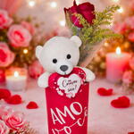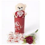 Tubo com Urso, Rosa Vermelha e Bombons Raffaello
