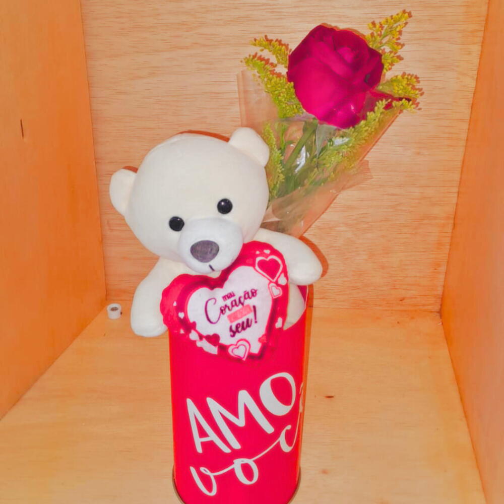 Tubo com Urso, Rosa Vermelha e Bombons Raffaello – Um Presente Encantador e Delicado Surpreenda quem você ama com este presente exclusivo que combina ternura, beleza e sabor. O Tubo com Urso, Rosa Vermelha e Bombons Raffaello é a escolha perfeita para demonstrar seus sentimentos de forma inesquecível. Por que escolher este presente? Este conjunto reúne elementos que simbolizam amor e carinho de forma única: Urso fofo Meu coração é todo seu: com 16 cm de altura e 13 cm de comprimento, este ursinho certificado pelo Inmetro (009 305/2022) é o símbolo perfeito do afeto que você quer transmitir. Botão de rosa vermelha: delicado, representa paixão e romantismo, adicionando um toque elegante ao presente. 11 bombons Raffaello: saborosos e sofisticados, são a escolha ideal para adoçar momentos especiais. Detalhes do Produto 1 tubo de papel com a mensagem “Amo você” Altura total do tubo: 35 cm e diâmetro de 15 cm Apresentação charmosa, perfeita para ocasiões como aniversários, Dia dos Namorados, ou simplesmente para surpreender quem você ama. Benefícios exclusivos Presente pronto para encantar, com uma combinação perfeita de elementos que unem doçura e romantismo. Produto cuidadosamente montado para garantir uma experiência visual e gustativa inesquecível. Ideal para surpreender e criar memórias afetivas que duram para sempre. Transforme seus momentos especiais em celebrações de amor e carinho com o Tubo com Urso, Rosa Vermelha e Bombons Raffaello. Garanta já o seu e demonstre todo o seu afeto com delicadeza e sabor!