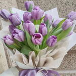 Encante-se com este lindo buquê formado por 18 tulipas liláses, delicadamente dispostas entre folhagens frescas. Apresentada em uma embalagem de design exclusivo, essa composição graciosa é finalizada com um laço charmoso. Perfeito para expressar sentimentos de amor e carinho em qualquer ocasião. Ideal para adicionar um toque de elegância a qualquer ambiente.