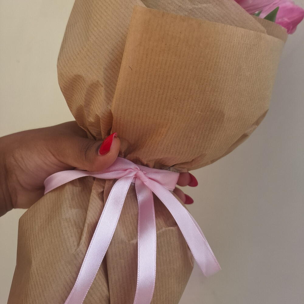 embalagem kraft - 1 un. tulipa - 8 un. laço em cetim - 1 un.