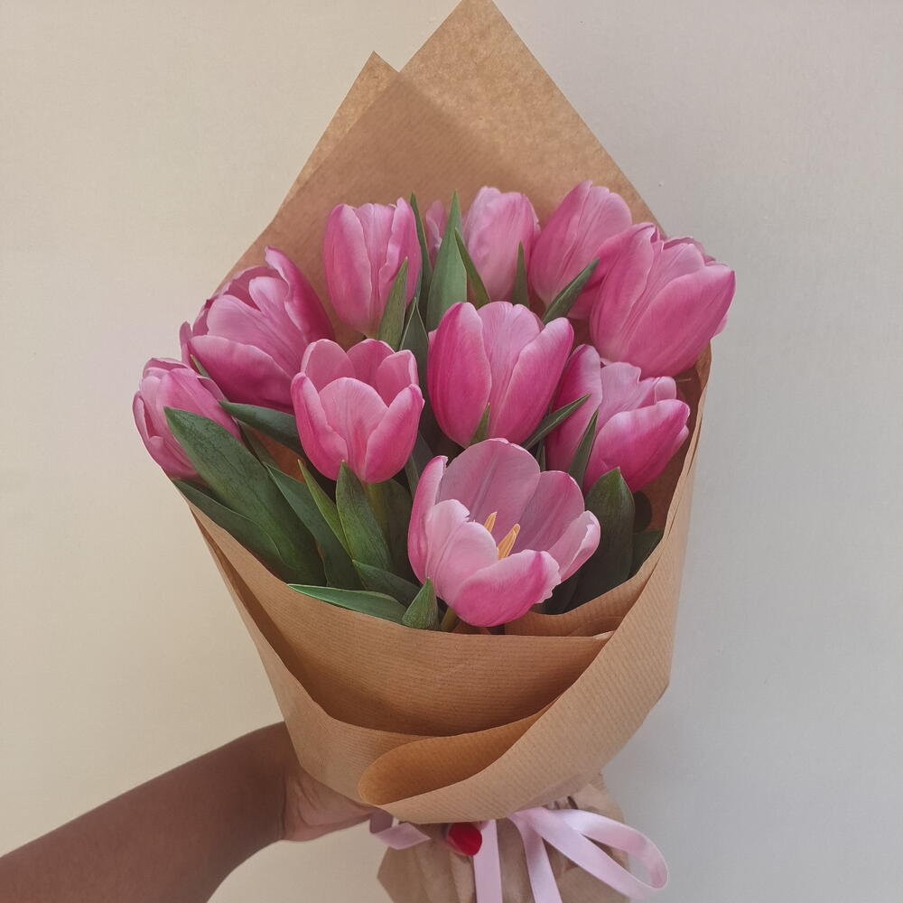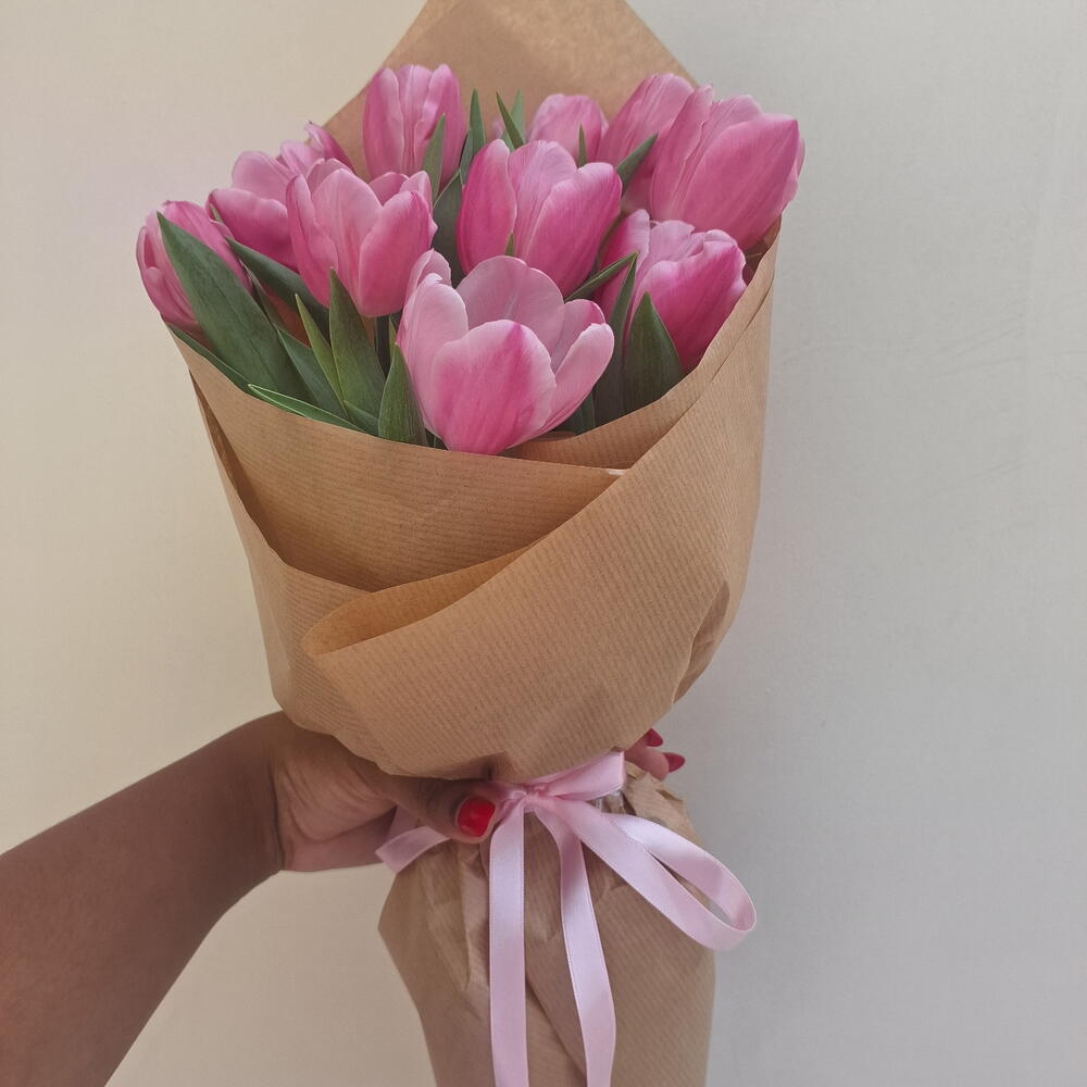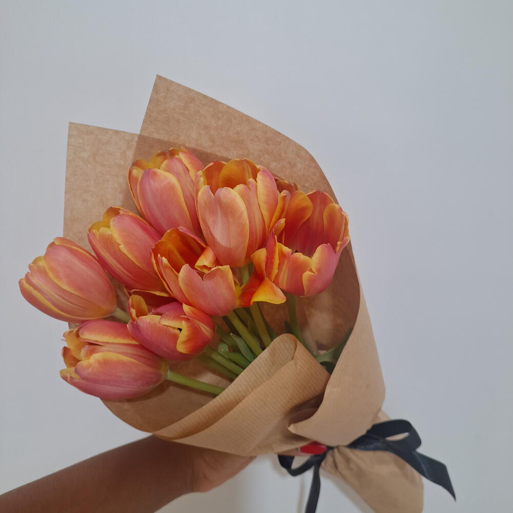 Buquê com 8 tulipas, envolto em papel kraft e finalizado com fita de cetim. Um arranjo delicado e sofisticado, ideal para expressar amor, carinho e elegância. As tulipas são flores importadas, não produzidas no Brasil, o que as torna raras e especiais, exigindo cuidado desde o cultivo até a chegada ao arranjo final. Cada cor carrega um significado único — como amor, ternura, alegria ou paz — tornando o buquê ainda mais simbólico. A tonalidade pode variar conforme a disponibilidade do mercado; caso deseje uma cor específica, basta informar pelo chat após a compra.