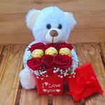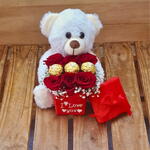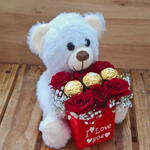 Urso de peluciaTuka Toy 20 cm com flores e chocolates