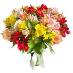 Um arranjo vibrante que transmite alegria, leveza e boas energias! Composto por 25 hastes de alstroemerias coloridas, este lindo vaso é uma explosão de cores e frescor, perfeito para iluminar qualquer ambiente e encantar em todas as ocasiões. As flores são dispostas em um vaso de vidro elegante, finalizado com um delicado laço de fita.