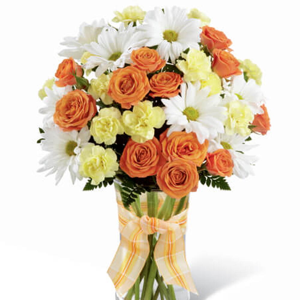 Vaso de Margarida e Rosa e Cravo Amarelo