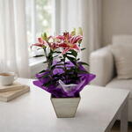 Um vaso de lírio plantado para presentear com elegância e sofisticação.