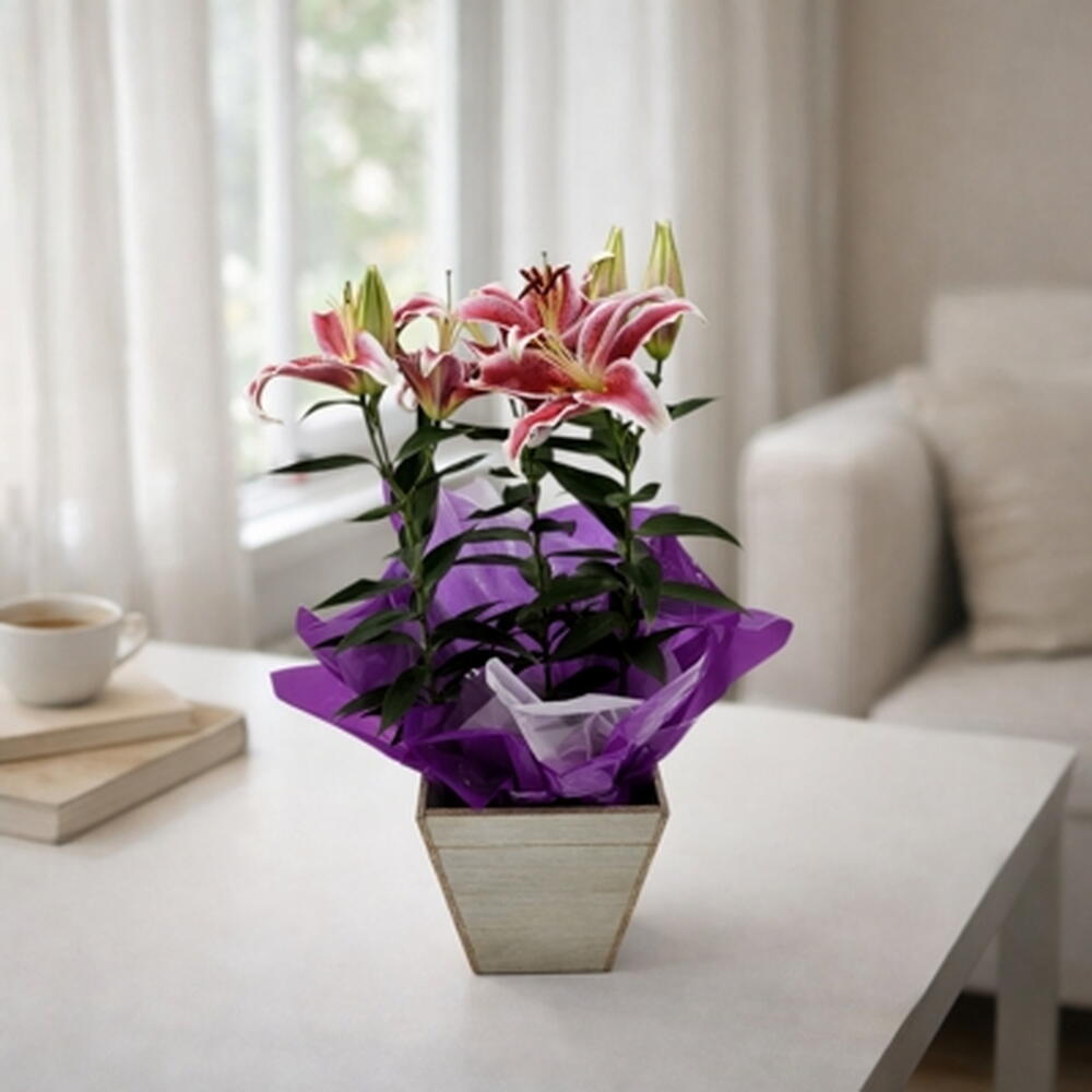 Um vaso de lírio plantado para presentear com elegância e sofisticação.