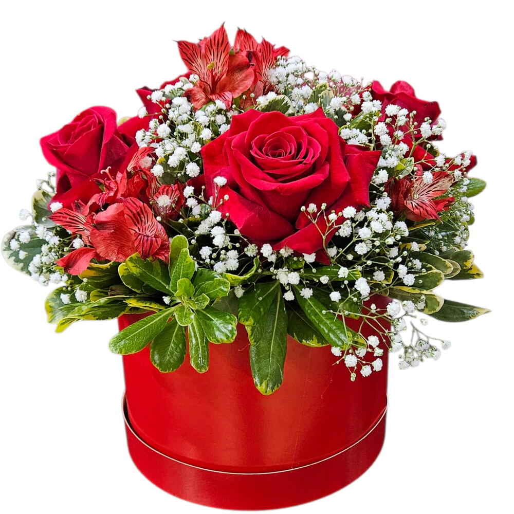 Esta elegante box de flores é composta por quatro rosas colombianas luxuosas, cuidadosamente arranjadas com uma unidade de folhagens para realçar a beleza natural das rosas. Todas essas belezas são delicadamente colocadas em uma caixa de alta qualidade, prontas para se tornar um presente perfeito para alguém especial ou para adornar qualquer ambiente. A sensação de luxo e bom gosto é garantida ao receber este lindo box de flores.