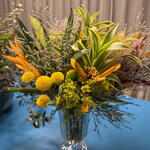 Bonina amarela , panicum virgatum , Dracena , bico de papagaio , tango , folhagem