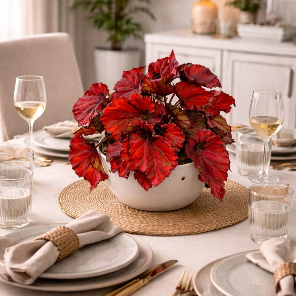Folhagem de begonha, vermelha, plantado em um lindo. Vaso para a decoração de centros de mesa e escritórios.