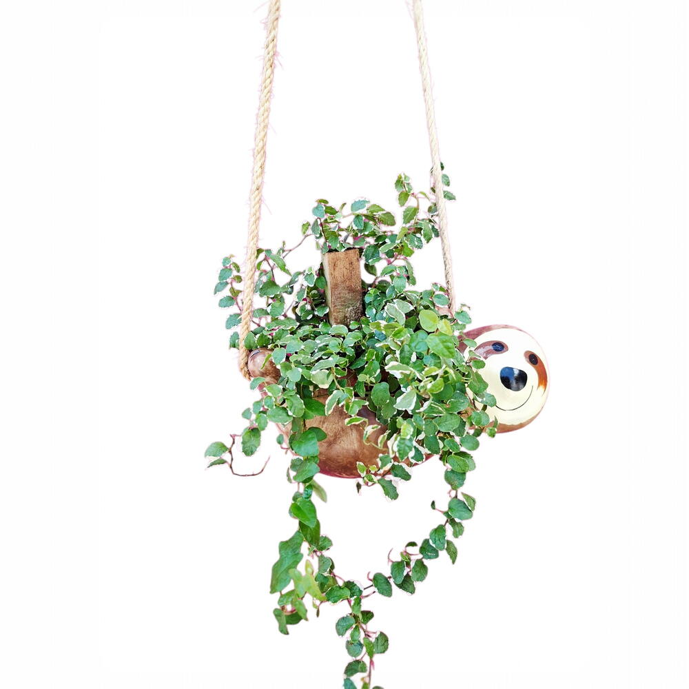 Vaso pendente bicho preguiça em cerâmica.