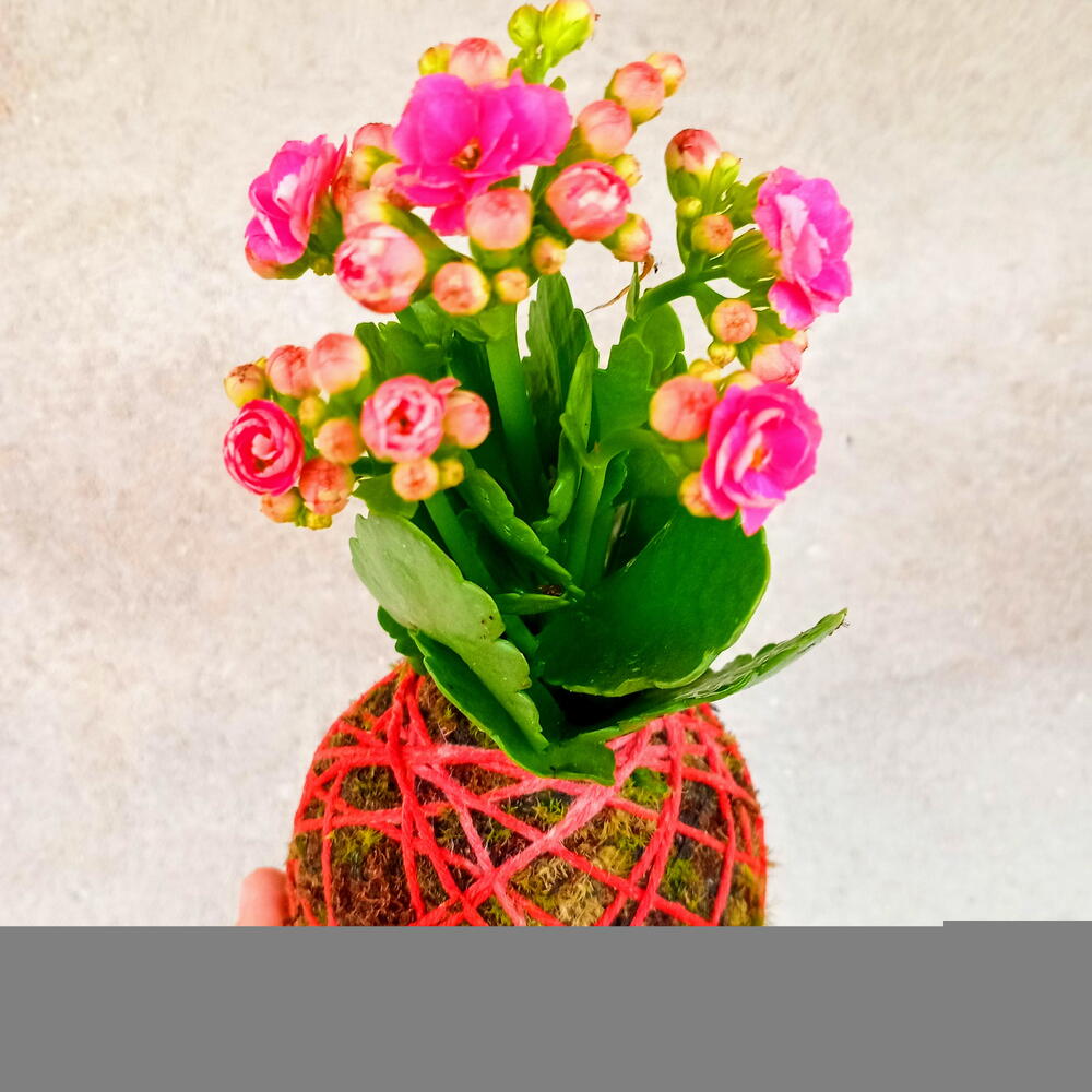 Kokedama de mini kalanchoue ou kalandiva, temos nas cores branca, amarela, vermelha, rosa, laranja. Temos na qualidade das flores lisas ou dobradas. Além de ser de fácil cultivo, é um belo presente "vivo".