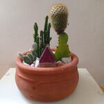Mini jardim com cactos em vaso de barro
